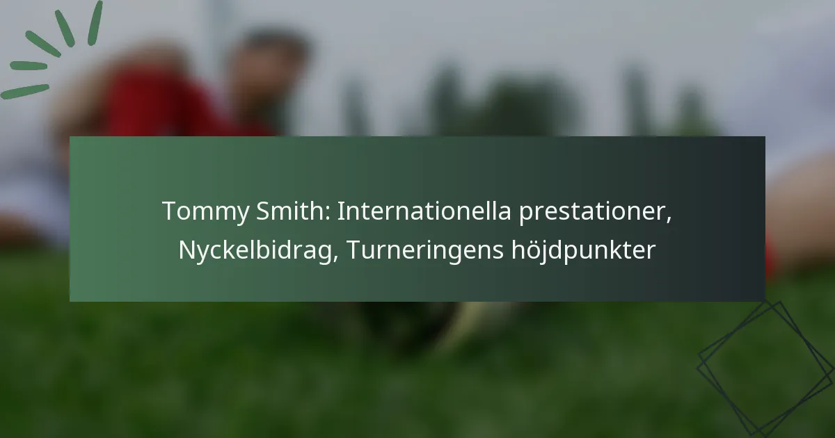 Tommy Smith deltog i flera stora internationella turneringar under sin karriär, där han visade upp sina färdigheter på en global scen. Hans engagemang i dessa tävlingar har bidragit avsevärt till hans rykte som en nyckelspelare i sitt landslag.